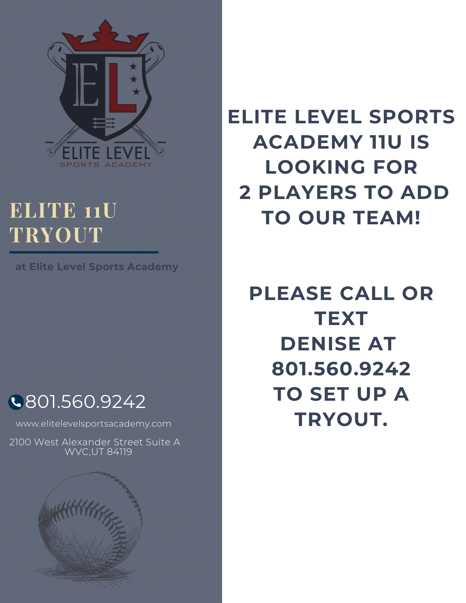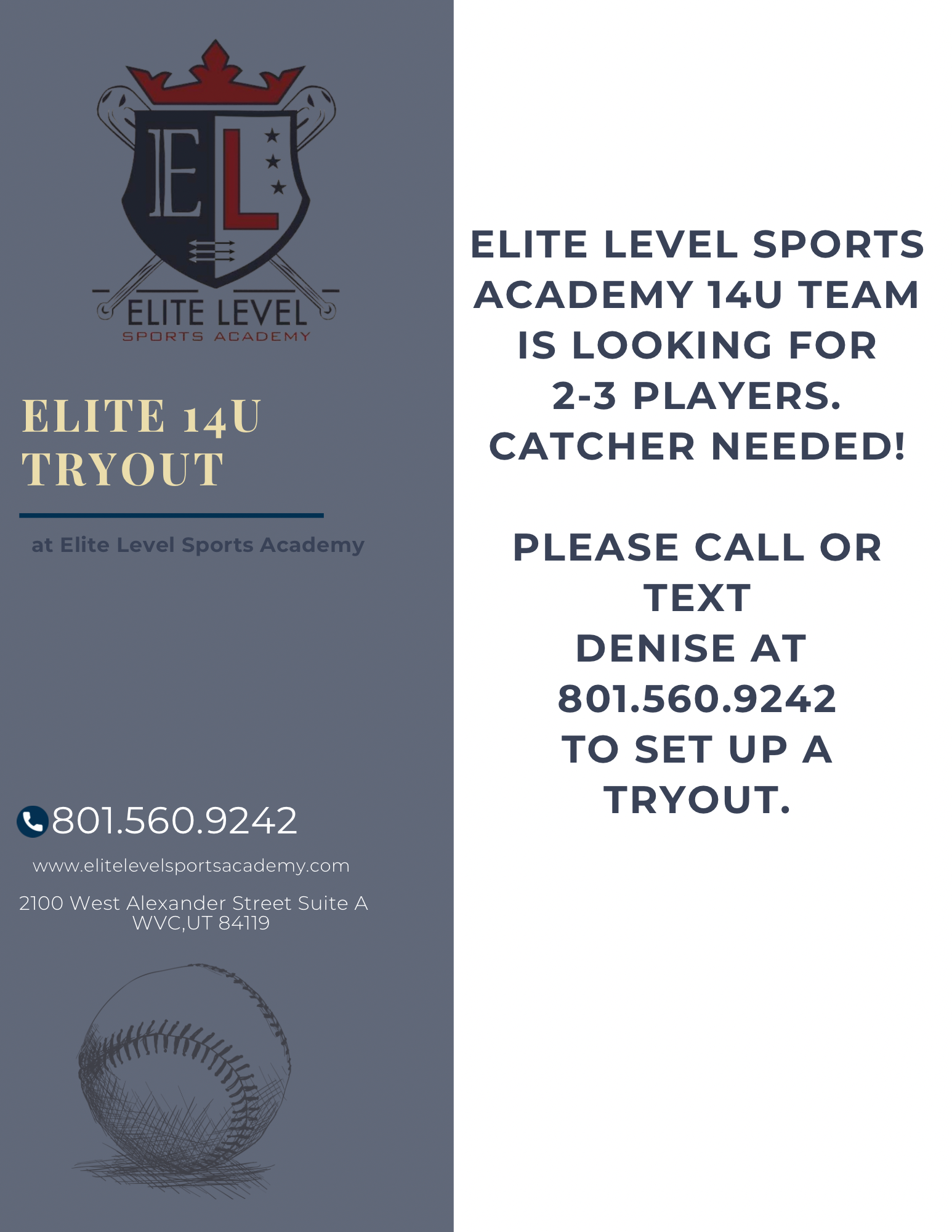 Call Denise Swope at (801) 972-2829 to schedule use of our facilities, reserve batting cages or set up personal lessons. If you have questions about our rates or available facilities please head to our Rates page.